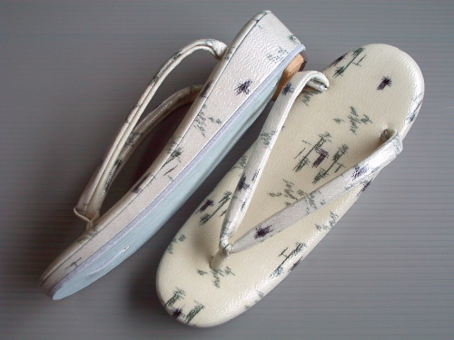 コメント:化繊生地で作った草履です。ビニールコーティングを施して強度と防水性を高めました。サイズ・ヒール高などお気軽にご相談ください。